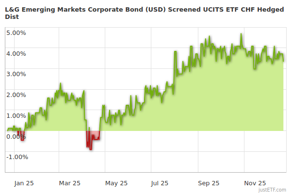 | L&G Emerging Markets Corporate Bond (USD) Screened UCITS ETF CHF Hedged Acc | 11 | 0,38% p.a. | Thesaurierend | Sampling |