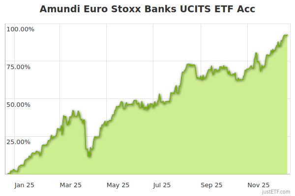 | Amundi STOXX Europe 600 Banks UCITS ETF Acc | 1.633 | 0,30% p.a. | Thesaurierend | Swap-basiert |
