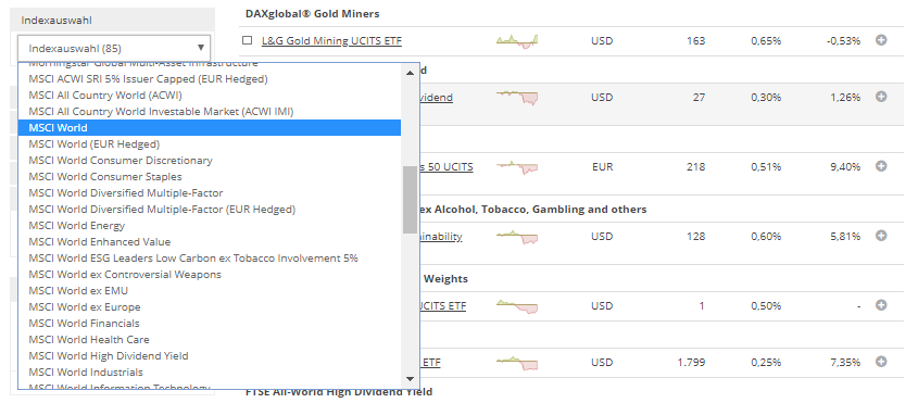 With the filter criterion “Index Family” you can limit your ETF selection to one or more index providers, like FTSE or