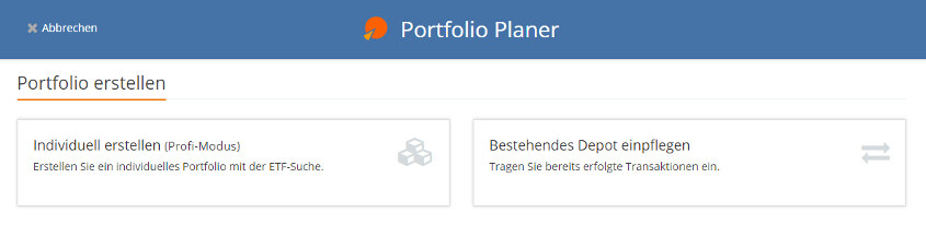Den Profi-Modus starten Sie mit der Option „Individuell erstellen“. Über diesen Weg richten Sie sich ein individuelles Portfolio ein und nutzen unsere vielfältigen