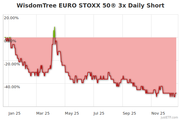 | Amundi EURO STOXX 50 Daily (-2x) Inverse UCITS ETF Acc | 28 | 0,60% p.a. | Thesaurierend | Swap-basiert |