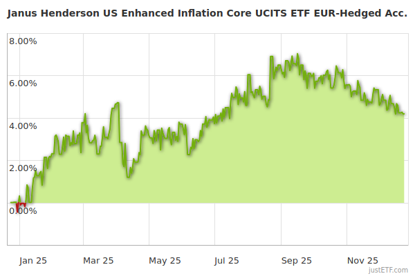 In diesem Abschnitt erhältst du Informationen über andere ETFs mit einem ähnlichen Anlageschwerpunkt wie der Janus Henderson US Enhanced Inflation Core UCITS ETF EUR-Hedged Acc..