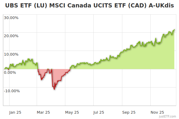 | UBS MSCI Canada UCITS ETF CAD dis | 853 | 0,33% p.a. | Ausschüttend | Vollständig |