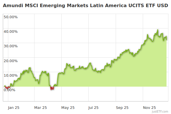 | iShares MSCI EM Latin America UCITS ETF (Dist) | 1,029 | 0.20% p.a. | Distributing | Sampling |