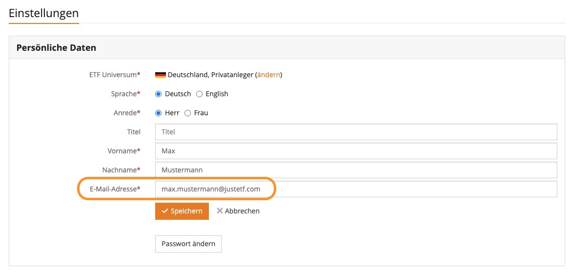 Bitte beachte, dass deine neue angelegte E-Mail Adresse auch zukünftig dein neuer Benutzername zur Anmeldung auf justETF ist.