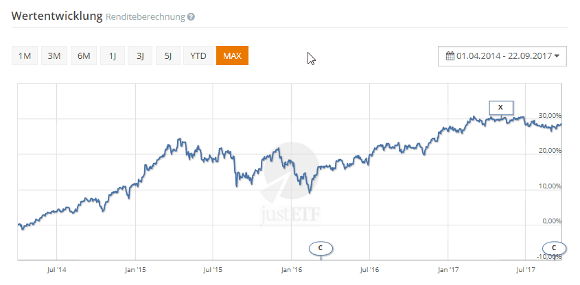 Mit „C” werden deine individuellen Kommentare in der Grafik angezeigt. Du kannst dein Portfolio und dessen Wertentwicklung jederzeit kommentieren und dir Notizen machen. Wie du die Kommentarfunktion nutzt, bleibt ganz dir überlassen. Wie du einen Kommentar hinzufügst, erklären wir dir weiter unten unter „Einen Kommentar hinzufügen”.