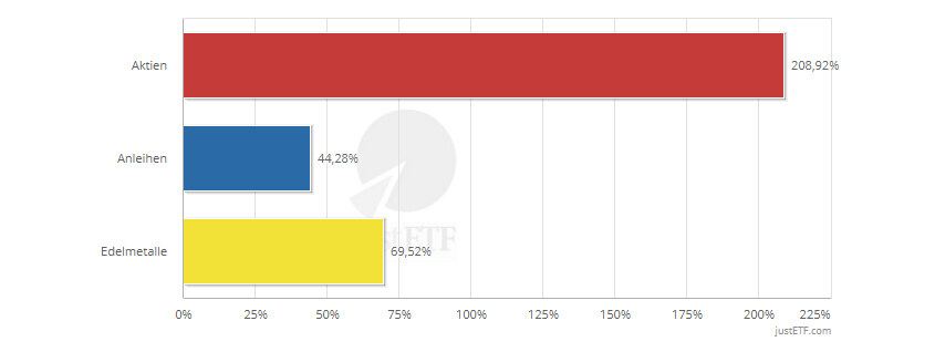 Erfahre hier, wie sich die einzelnen Anlageklassen entwickelt haben. Alle ETFs werden auf Anlageklasse-Ebene aggregiert und die Renditen anteilig gewichtet.