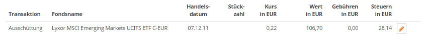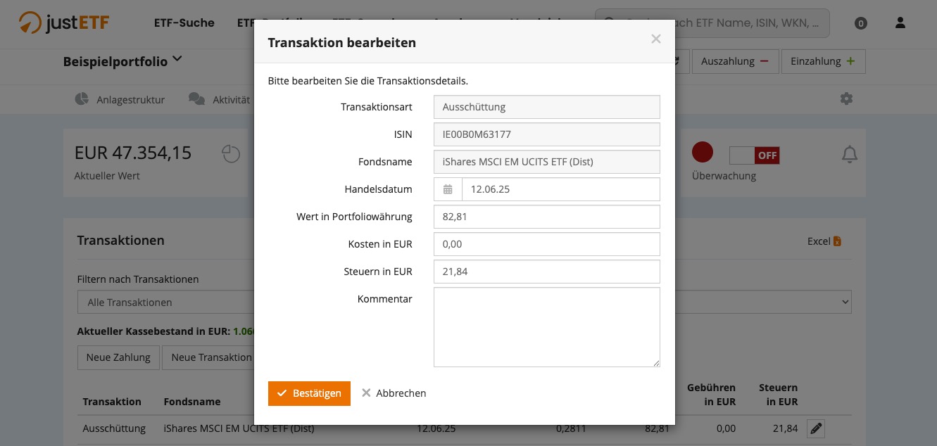 Automatisch verbuchte Ausschüttungen kannst du jederzeit ändern. So kannst du zum Beispiel den Wert der Ausschüttung oder die Höhe der angefallenen Steuern anpassen.
