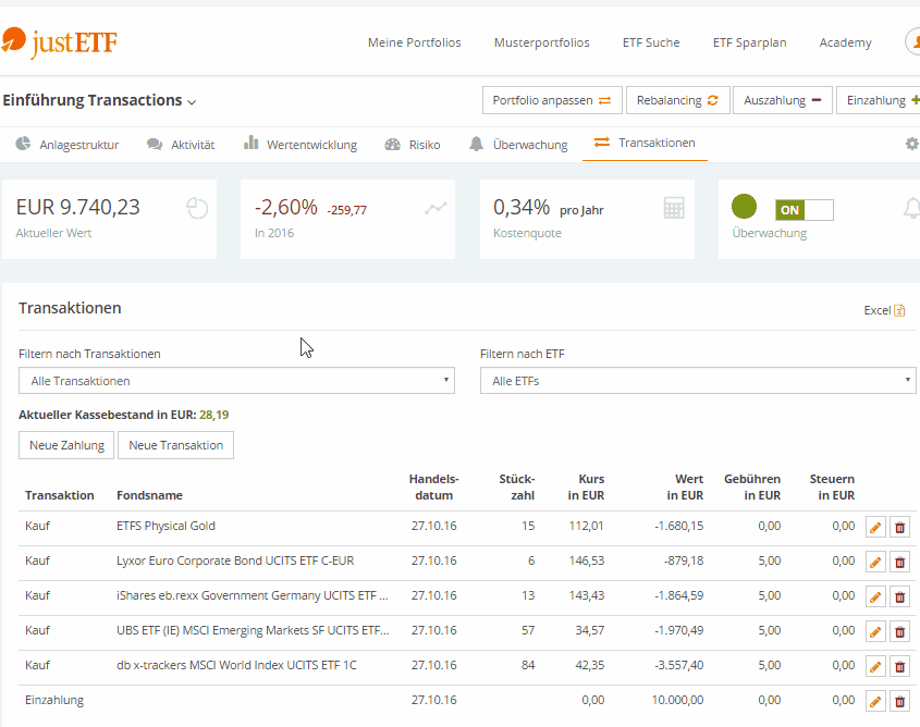 Ein weiterer Vorteil dieser Vorgehensweise ist, dass das System automatisch deine neue veränderte Plan-Anlagestruktur abspeichert. Dies ermöglicht dir ein Portfolio-Rebalancing oder auch eine Einzahlung in diese Portfolio-Struktur zu einem späteren Zeitpunkt.
