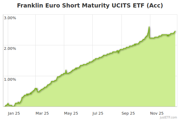 | Franklin Euro Short Maturity UCITS ETF (Dis) | 324 | 0,15% p.a. | Distribución | Replicación física perfecta |