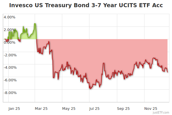 | Invesco US Treasury Bond 3-7 Year UCITS ETF Dist | 102 | 0,06% p.a. | Distribuzione | Campionamento |