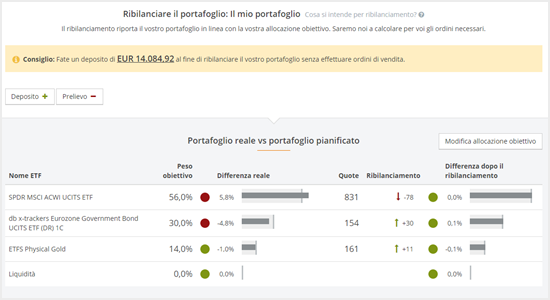 Ripristinate la tua allocazione strategica con la nostra funzionalità di ribilanciamento veloce. Il nostro sistema eseguirà per voi tutti i complessi calcoli e genererà una funzionale lista degli ordini per il tuo broker.