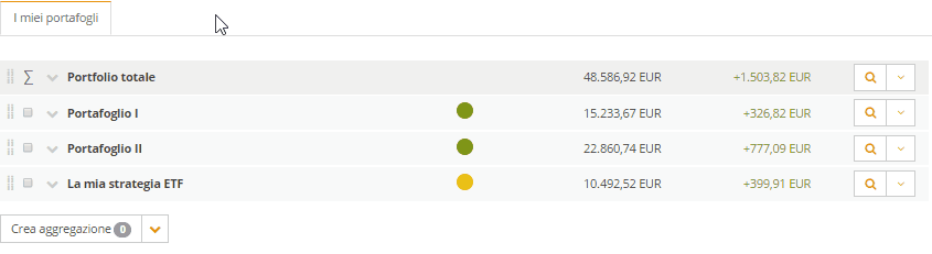 Create una sintesi complessiva dei vostri portafogli semplicemente selezionando e cliccando su “Crea aggregazione” nel pannello azioni.