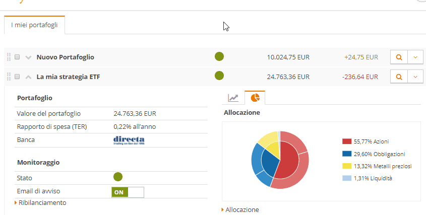 Nella versione Free, nel vostro account justETF potete creare un solo portafoglio. Nella versione justETF Premium potete aggiungere 5 o 25 portafogli.