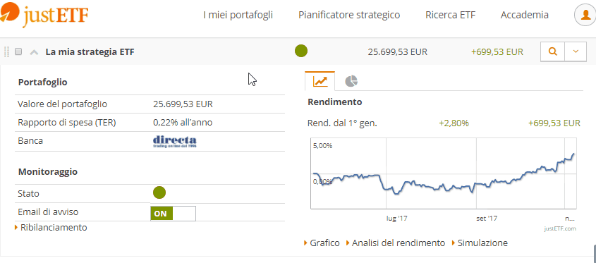 Pianificatore di portafoglio dove potrete effettuare ulteriori modifiche e generare la