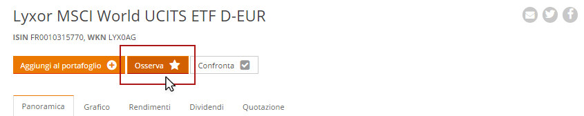 Scegliete un ETF e cliccate sul tasto watchlist per aggiungere direttamente un ETF alla vostra watchlist.