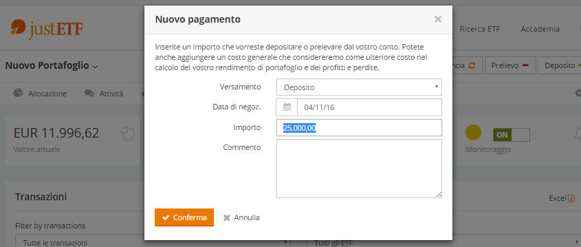 Transazioni. L’importo sarà accreditato o addebitato nella data di negoziazione scelta nel vostro portafoglio virtuale.